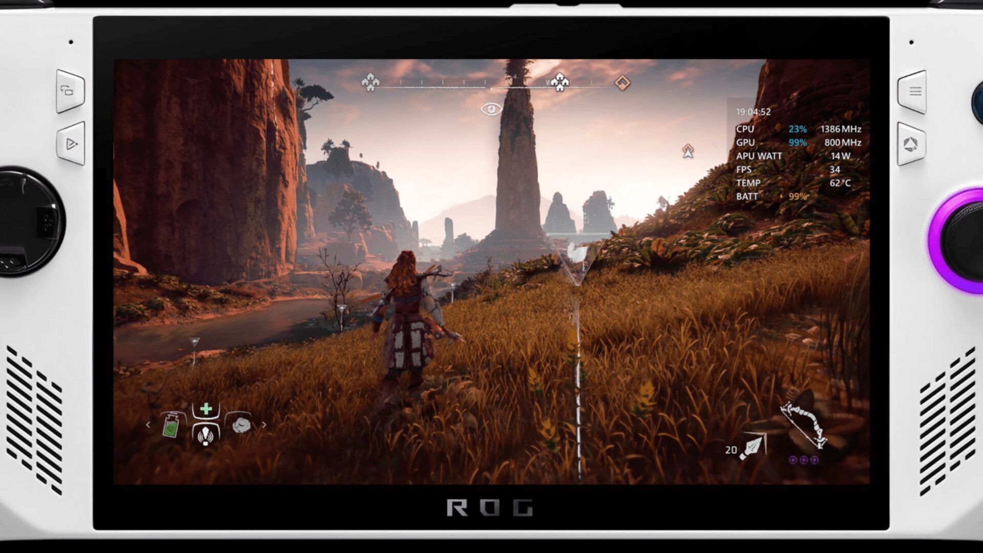 120Hz panel daje dodatkowo możliwość zablokowania wydajności na 40 FPSów przy zachowaniu idealne stabilnego wyświetlania klatek, ze względu na to, że mamy tu dokładnie ⅓ wartości odświeżania. W Steam Decku jest podobna opcja, ale tam wymuszamy po prostu 40Hz – w przypadku ASUS ROG Ally zyskamy lepsze wrażenie płynności, niższe opóźnienia w sterowaniu i zupełnie wyeliminujemy problem niewielkiego migotania obrazu, na które skarżyło się kilka osób. Co ciekawe, w limiterze od ASUSa znajdziemy tylko blokadę na 45FPS, która jest nieprawidłową wartością dla panelu 120Hz i powoduje zauważalne przycinki podczas szybkiego obrotu kamery i ponownie nie zalecam z niego korzystać, a po prostu pobrać sobie RTSS i tam ustawić wydajność dla wybranego tytułu. Dodatkowo ROG Ally daje możliwość ustawienia odświeżania na 60Hz, ale nie warto tego robić, bo różnica w żywotności pracy akumulatora jest znikoma, a przy okazji tracimy wsparcie VRR.
