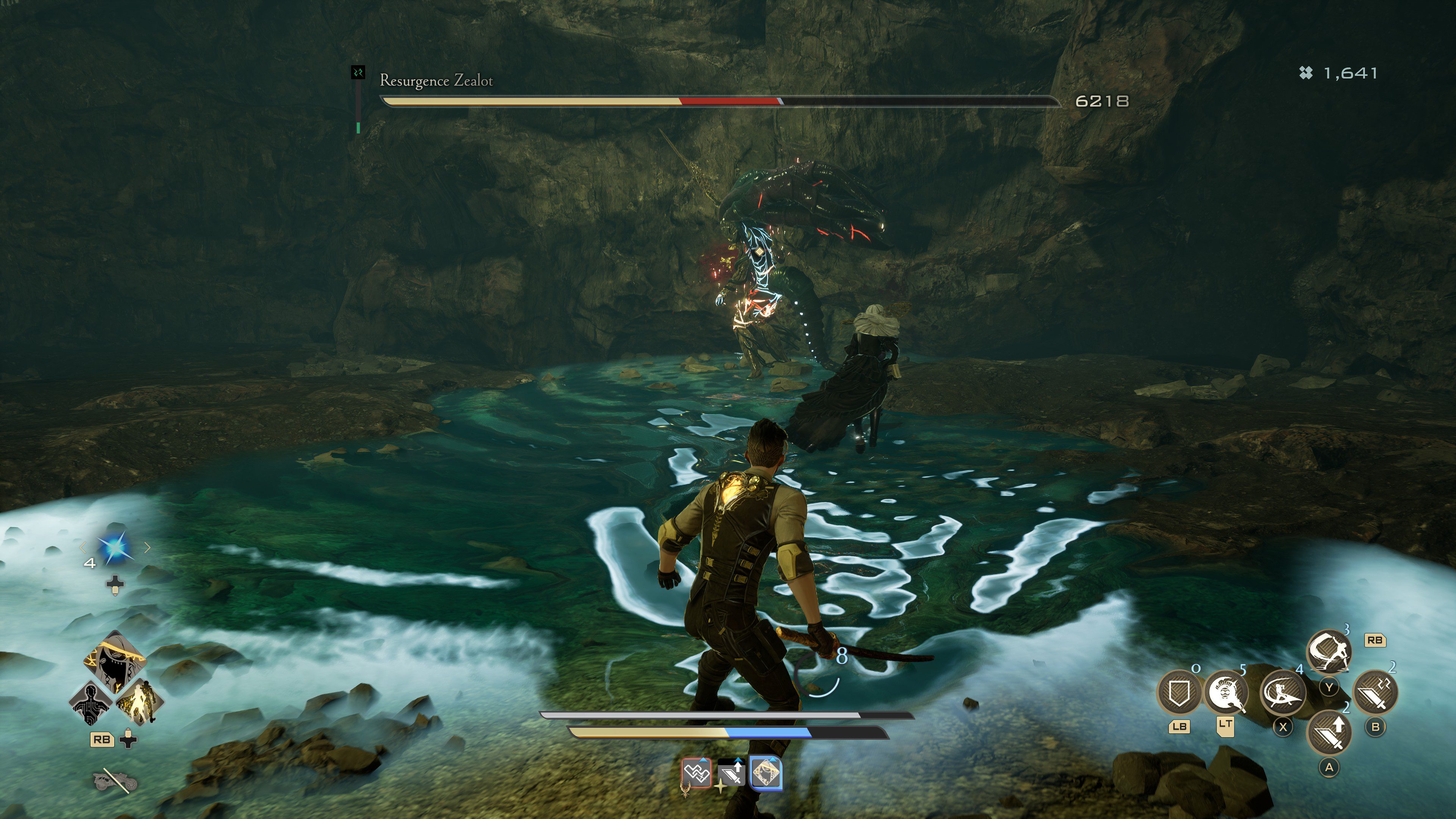 Do tego dochodzą towarzysze. Gra jest zaprojektowana pod kooperację z AI. Twój partner (wybór zależny jest od miejsca w fabule i naszych decyzji) jest potężny. Odciąga od nas wrogów, zadaje spore obrażenia, a co najgorsze – może Cię wskrzeszać. To zabija napięcie. W Dark Souls jeden błąd oznacza śmierć. Tutaj? Partner na chwilę znika, oddaje część HP i walczysz dalej. Możesz umrzeć 5 razy w trakcie walki z bossem i nadal wygrać.