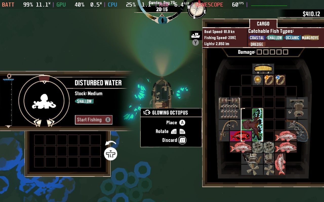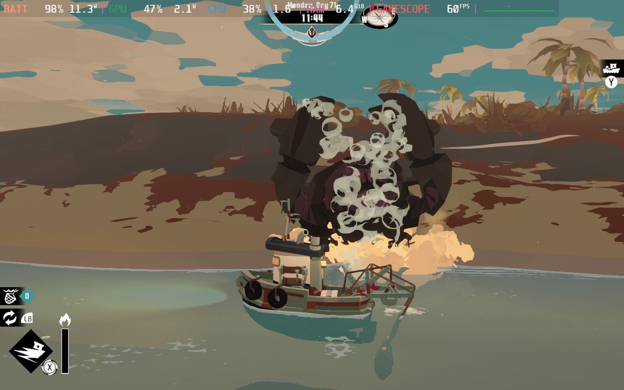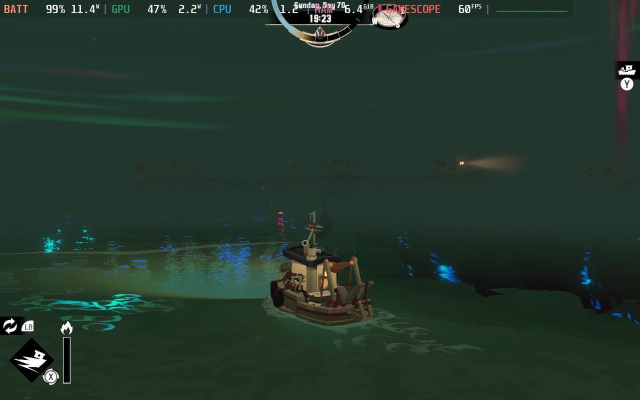 Pod względem technicznym DREDGE działa idealnie na Steam Decku. Wydajność to w pełni stabilne 60 klatek na sekundę w natywnej rozdzielczości przy około 3 godzinach grania na jednym ładowaniu. Interfejs oraz wielkość napisów są w pełni dostosowane do małego ekranu.