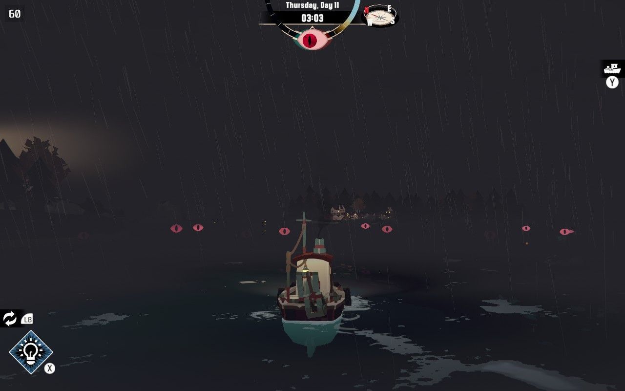 Bardzo podobało mi się, jak delikatnie gra wyjaśnia podstawy rozgrywki, a kolejne mechaniki odkrywamy tu w swoim tempie. Oczywiście większość akcji jest prosta i logiczna, ale ta aura tajemniczości idealnie pasuje do dość przytłaczającego nastroju, jaki został tu wykreowany. Tym, co wyróżnia DREDGE na tle innych gier wędkarskich jest unikalna fabuła i atmosfera. Gra łączy w sobie elementy horroru i tajemnicy, powoli wciągając w swój mroczny świat.