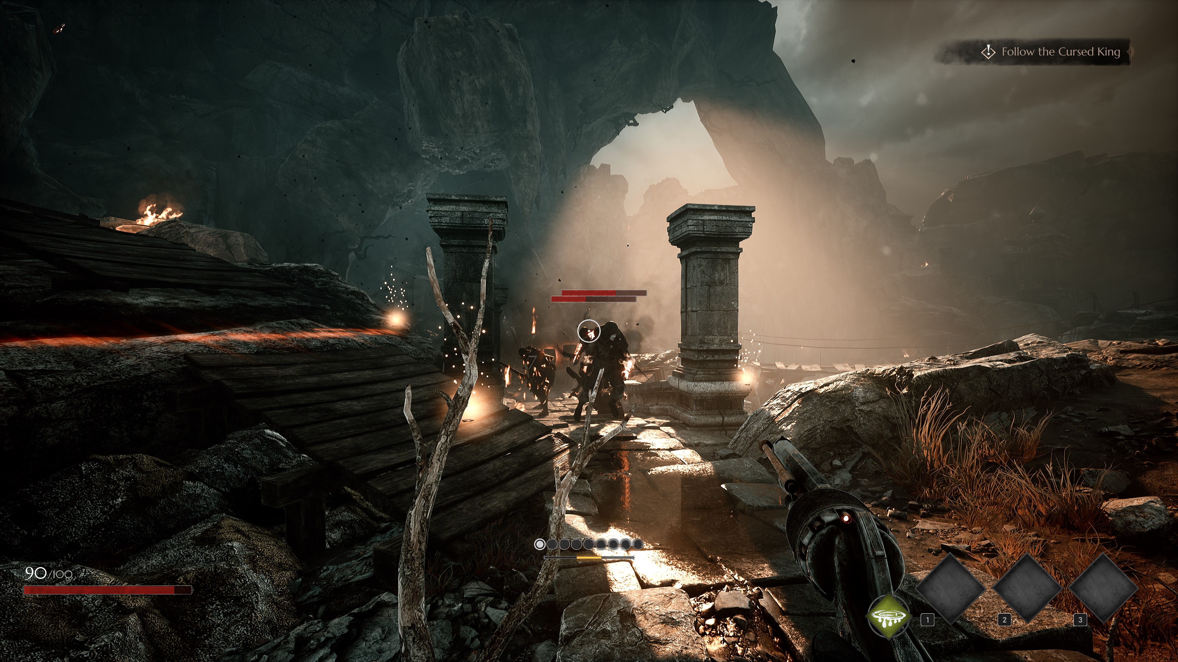 Model strzelania w Soulslinger: Envoy of Death był według mnie początkowo prawdziwą piętą achillesową tej produkcji, ale dziś sprawia mnóstwo frajdy. Jakbym miał go do czegoś porównać to byłby chyba Painkiller, ale bez równie szalonych broni. Tu dominują klasyczne rewolwery i strzelba uzupełnione o zróżnicowane efekty magiczne. Jest naprawdę szybko, dynamicznie i przyjemnie, a przy tym całkiem taktycznie.