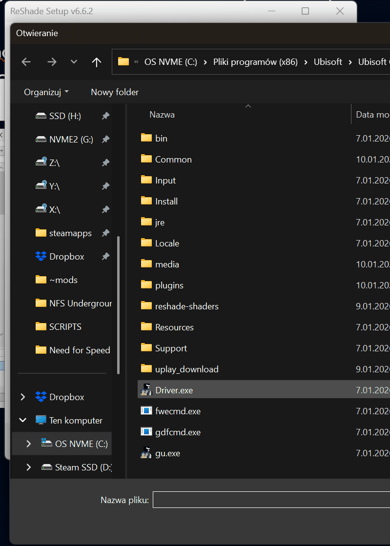Procedura instalacji Reshade jest bardzo prosta. Pobieramy program ze strony producenta, klikamy [BROWSE], idziemy do folderu z zainstalowaną grą i wybieramy Driver.exe, później [NEXT], zaznaczamy DirectX 9, [NEXT], a na ekranie z wyborem shaderów do instalacji klikamy [BROWSE] i wskazujemy wybrany przez siebie preset.