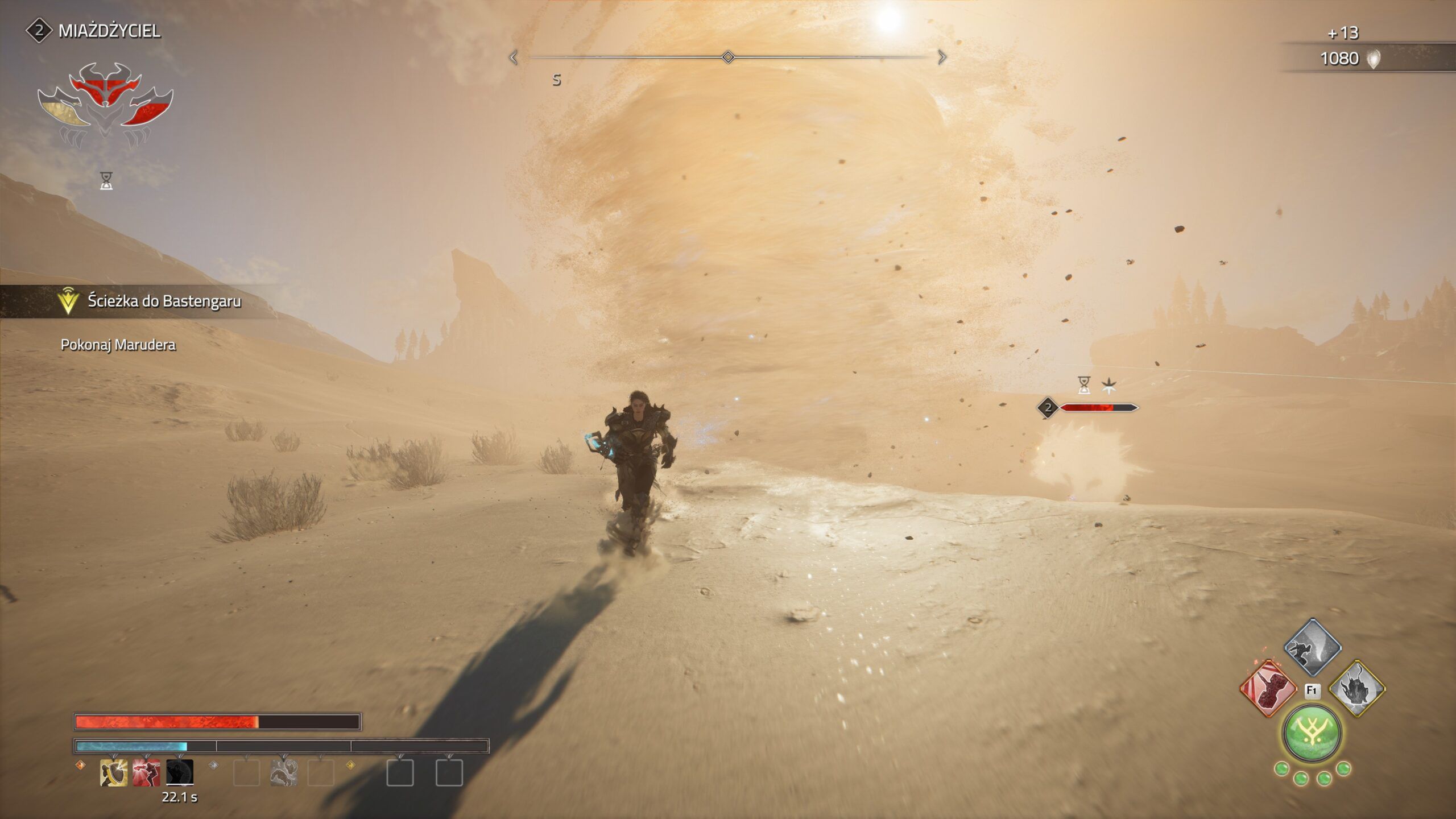Pomimo, że akcja dzieje się na pustyni, twórcy zadali sobie trud, aby świat był wystarczająco różnorodny i kolorowy. Wydajność jest solidna i nawet pomimo szybkiego surfowania po piasku nie ma tu praktycznie przycinek. W wersji przedpremierowej zaobserwowałem niewielkie problemy z doczytywaniem się tekstur pojedynczych obiektów, zwłaszcza napotkanych skrzyń. Troszkę przeszkadzał mi też zasięg rysowania roślinności – według informacji, które uzyskałem, twórcy już pracują nad poprawą tego elementu.