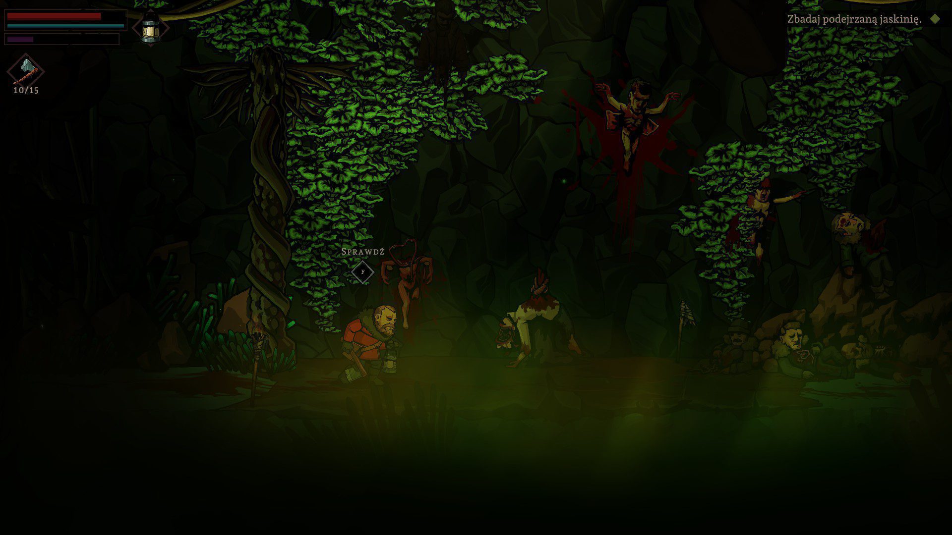 Mimo tego wszystkiego, radzi on sobie jednak bardzo dobrze. A pomaga w tym wyposażenie. Tego jest zatrzęsienie, od kamieni, noży i siekier, przez apteczki, pistolety sygnałowe po granaty i mołotowy. I wszystko się przydaje, bo poziomy są tak skonstruowane, że możemy wykorzystać ich budowę i rozstawione tam już prędzej pułapki na naszą korzyść. Uważać trzeba jedynie na broń miotaną, bo jeśli wyrzucimy ją poza widoczną część ekranu to znika w próżni. Wyposażenie znajdujemy podczas ekspedycji albo sami wyrabiamy. Część da się zrobić od ręki, jednak te potężniejsze możemy wytworzyć dopiero w obozowym warsztacie. Proces ten jest bardzo uproszczony, ot musimy mieć składniki, przytrzymać odpowiedni klawisz i voila, mamy to. Według mnie tych przedmiotów było zawsze za dużo, przez co nigdy nie miałem poczucia niedoborów. W kontrze do tego, jako utrudnienie warto dodać, że podczas ekspedycji nie możemy w dowolnym momencie zapisać gry. Trzeba więc uważać, co się robi.