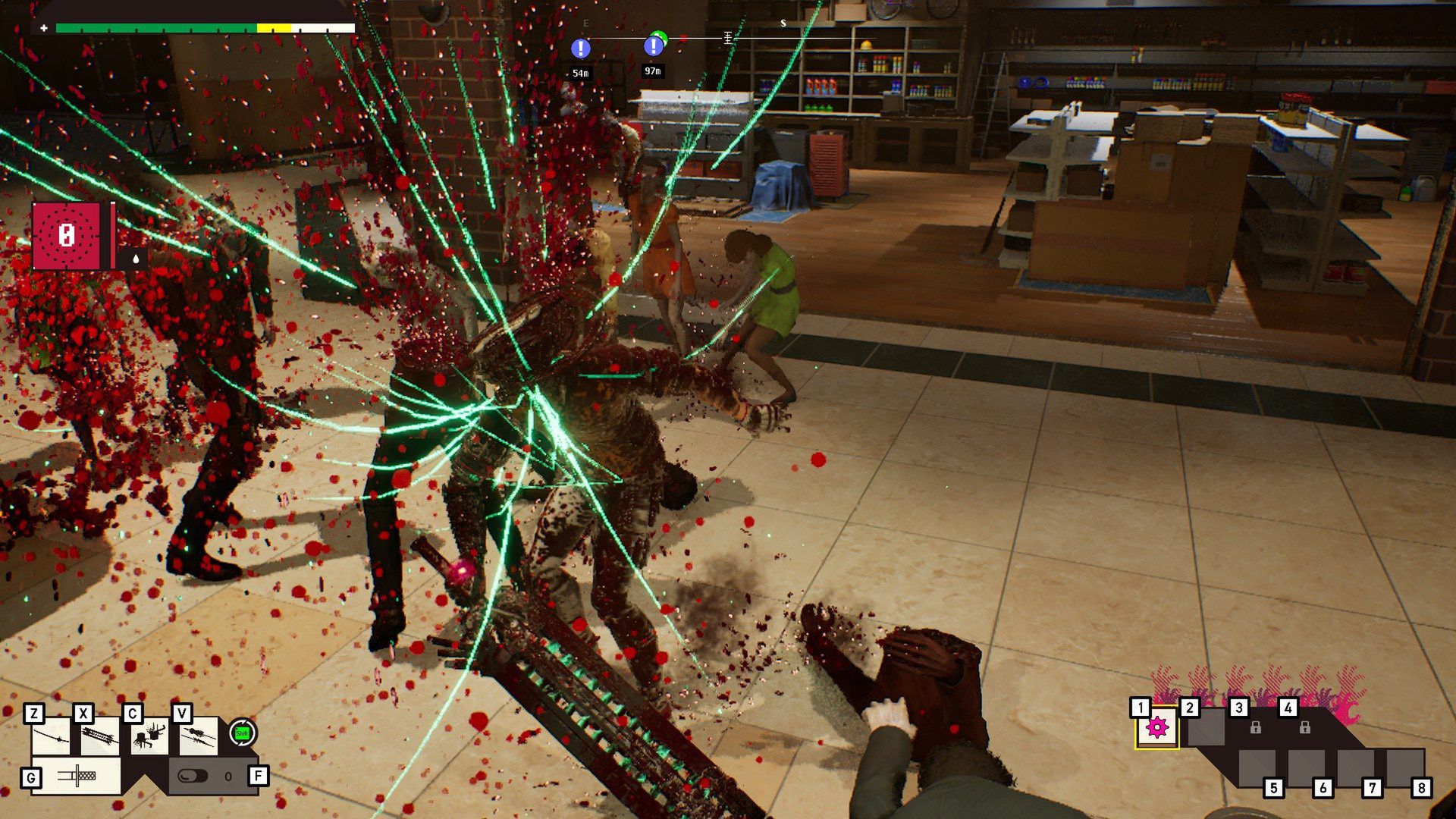 Z jednej strony, jeśli rzucisz się na głęboką wodę i wybierzesz najwyższy poziom trudności (Orange Chocolate), gra zamienia się w wyczerpujący sprawdzian umiejętności. Starcia wymagają wtedy żonglowania bronią białą i palną, strategicznego używania ciosów leczących (Bloody Summer) oraz umiejętnego wplatania do walki „Bastardów” – naszych hodowanych w doniczkach zombiaków-pomagierów. Bossowie, choć oparci na dość czytelnych schematach, ewoluują tu w godzinne zmagania, gdzie najmniejszy błąd kosztuje życie, a końcowa satysfakcja jest ogromna.
